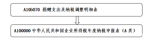 捐赠涉税事项在企业所得税年度申报表填报关联表单,如图: