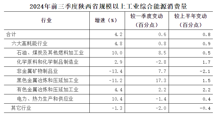 前三季度,全省规模以上工业综合能源消费量同比增长4.2%,增速较上年同期回落4.3个百分点,较一季度和上半年分别加快0.6和0.8个百分点,低于工业增加值增速3.3个百分点。受工业能耗有效控制的影响,全省年度节能降耗工作进展顺利。