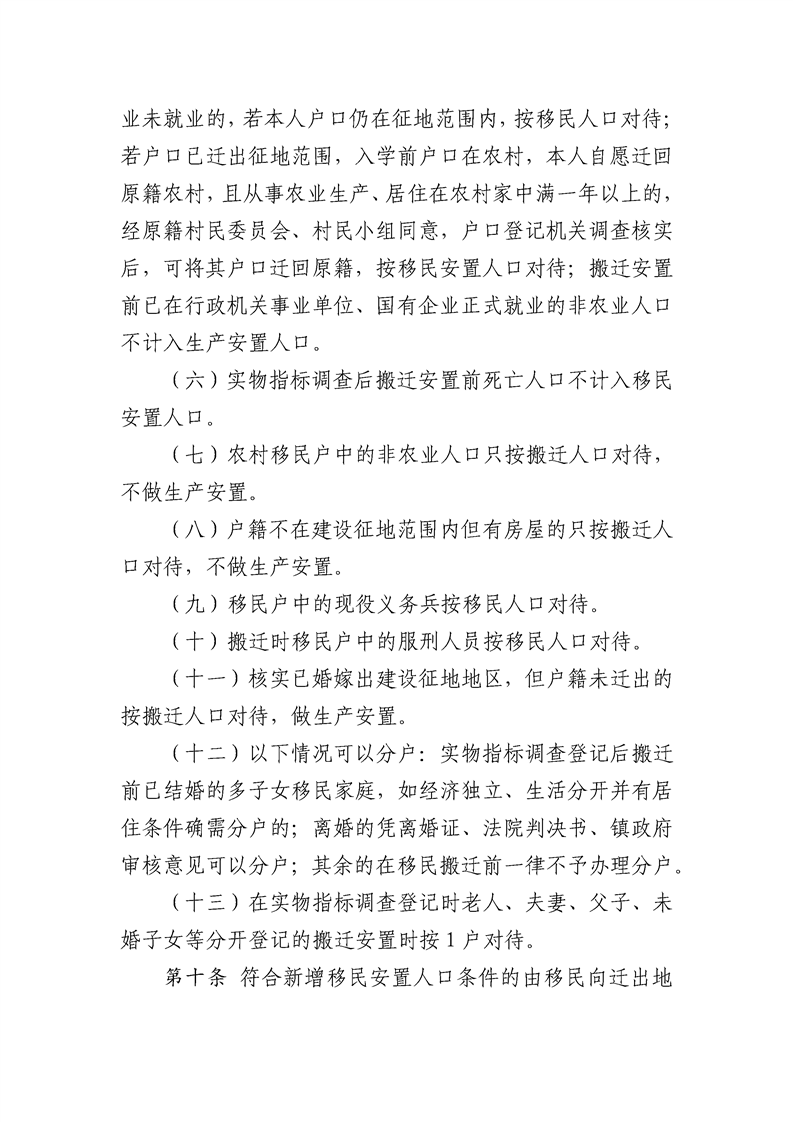 (十)搬迁时移民户中的服刑人员按移民人口对待。
