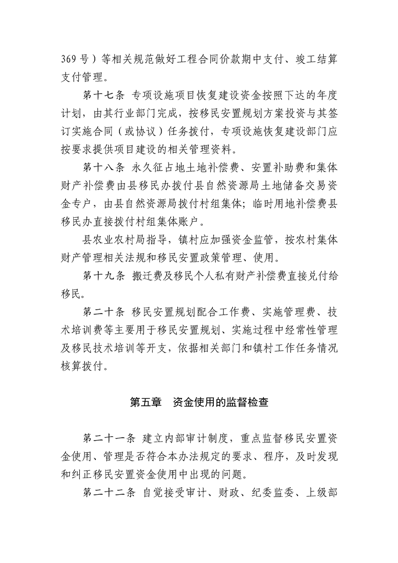 三、移民安置资金使用实行计划管理、项目管理、招投标合同(协议)管理。凡无资金使用计划、无招投标合同或移民安置协议的一律不得拨付移民安置资金。严格按照《中华人民共和国会计法》《大中型水利水电工程建设征地补偿和移民安置条例》(国务院令第679号)及相关法律法规管理使用移民安置资金。