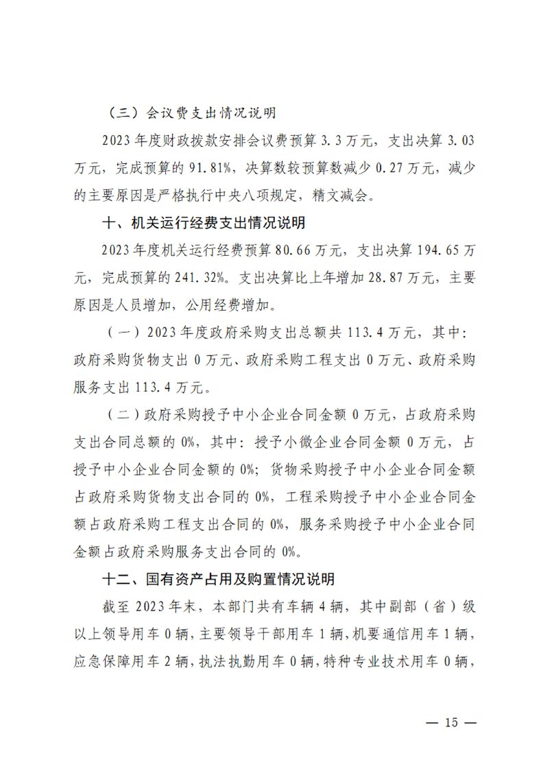 星空游戏平台环保督察办公室2023年决算公开说明(下载预览)