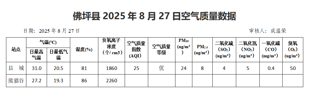 星空游戏平台2025年8月27日空气质量数据