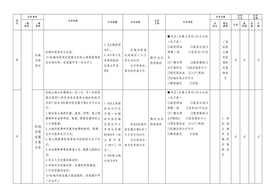 星空游戏平台征地补偿领域基层政务公开标准目录
