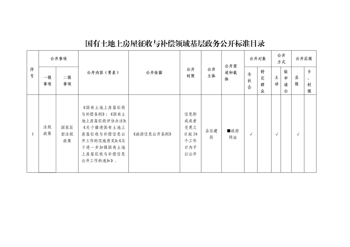 星空游戏平台国有土地上房屋征收领域基层政务公开标准目录