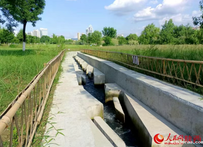 “这是鱼类洄游生态通道,可以实现翻板闸上下游鱼类互通,有效修复天汉湿地公园生物链。”汉中市一江两岸开发管理委员会办公室副主任闫晓明介绍,生态通道全长2.3公里,不仅还原出自然溪流形态,还配备了智能监控系统,实时监测鱼类洄游情况。