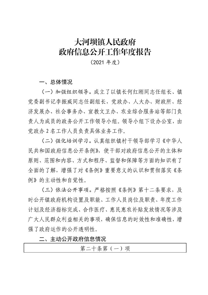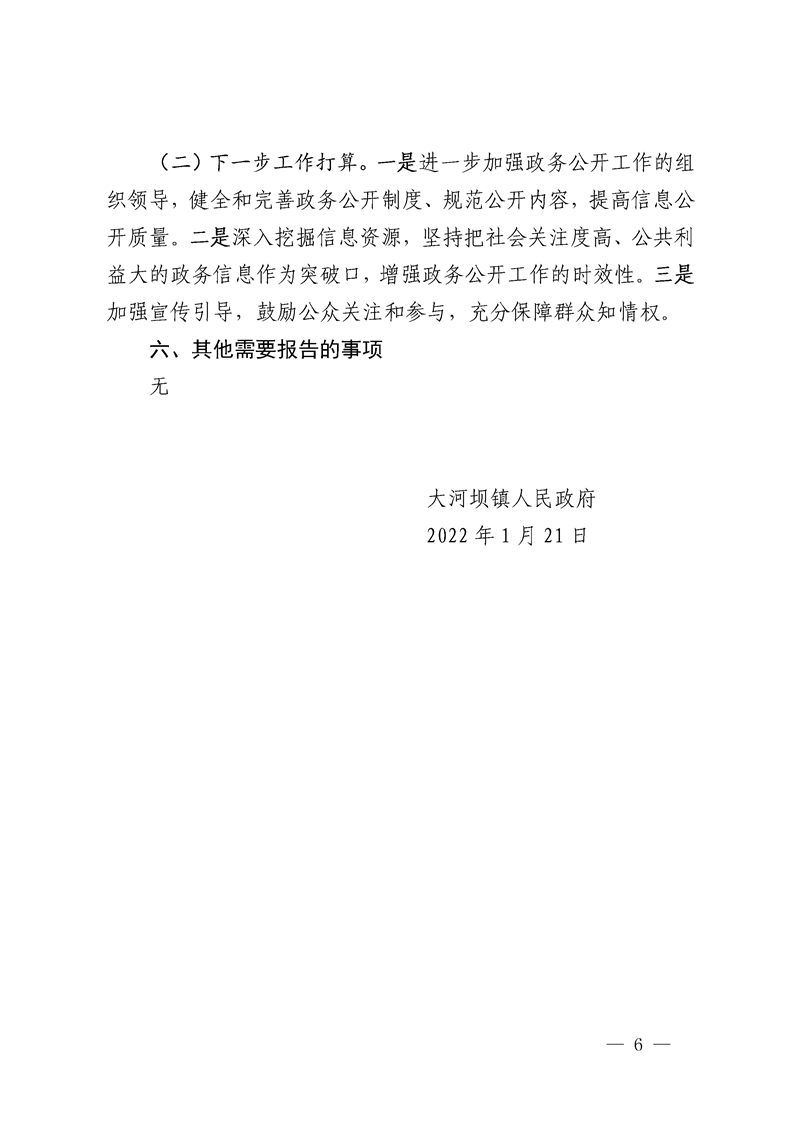 大河坝镇人民政府2021年度星空体育app下载方式工作报告